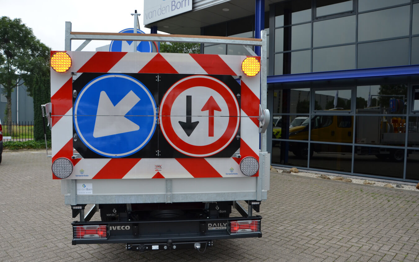 Om de zichtbaarheid van het voertuig te vergroten is rondom optische signalering aangebracht. Zo is de grille van de Iveco Daily voorzien van oranje flitsers, evenals de achterkant van de open laadbak. Op het dak van de cabine is een Weltronic ledbalk gemonteerd die is uitgevoerd met 48 LEDS. Bijzonder aan de flitsers is dat deze dimbaar zijn waardoor bij gebruik in de nacht, medeweggebruikers niet verblind raken.